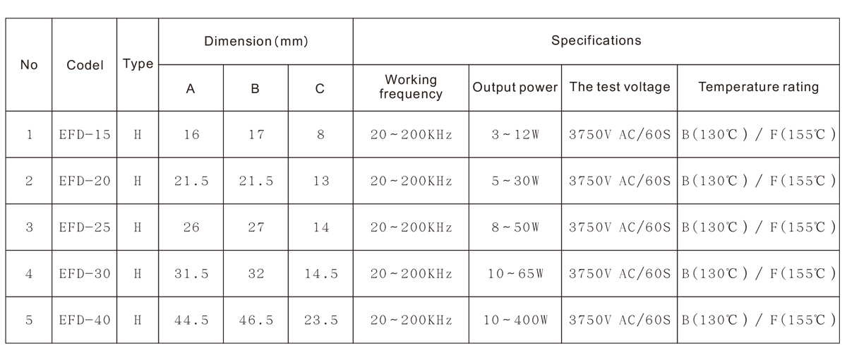 EFD磁芯符合行業(yè)標準的經(jīng)濟型平面設計,此結(jié)構(gòu)變壓器可為電路節(jié)省大量空間,其橫截面特別針對超薄變壓器而優(yōu)化,非常適合超薄變壓器和電感器使用。EFD型變壓器常用規(guī)格有EFD-15,EFD-20,EFD-25,EFD-30,EFD-40等。